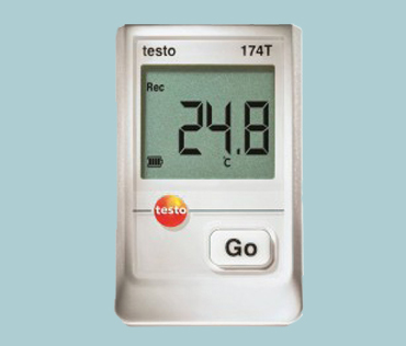 Display of current temperature value High data security Waterproof according to IP65 Measurement data memory for 16,000 measurement values The mini data logger for temperature, testo 174T, is ideal for accompanying transports.