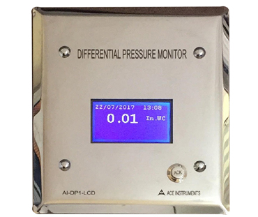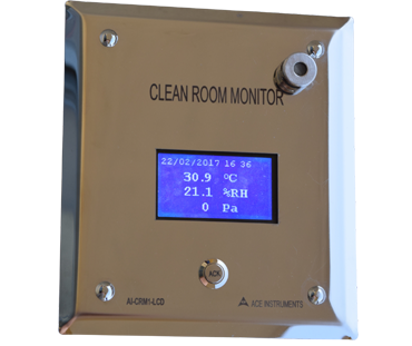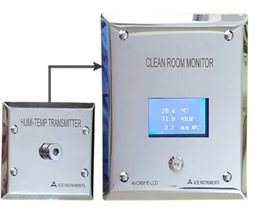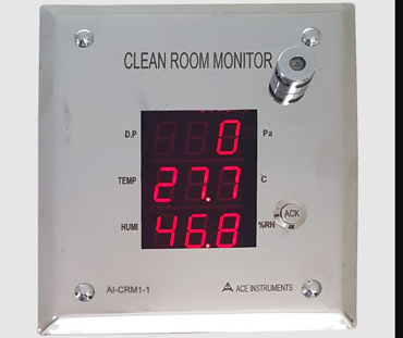 The ACE INSTRUMENTS make Pharma Clean Room Monitor is designed to measure the vital parameters of Temperature, Humidity and Differential pressure in pharma clean room applications. The clean Room Monitor Model AI-CRM1-1 is designed for minimum cabling and easy flush mounting in modular wall panels or brick walls of Clean Room.