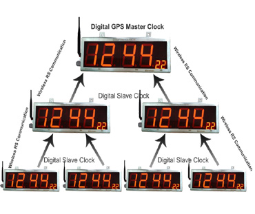 The Master Clocks can either be GPS Synchronized or Ethernet Based wherein the Master Clock synchronizes with the Server to display server time all across the network of clocks.